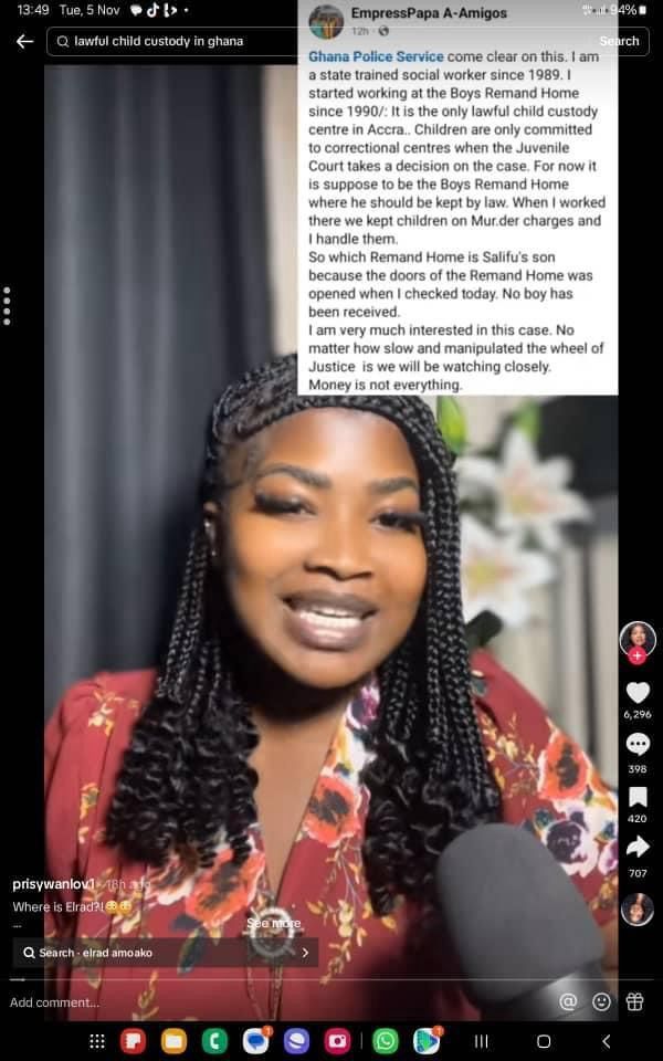 Following the Court’s order on 1st November 2024, suspect Elrad Salifu Amoako was taken to the Osu Correctional Centre, where he remains as of this morning."