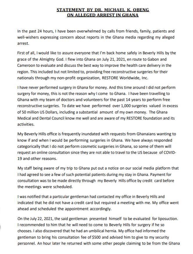 In a statement, Dr. Obeng has urged other media house that carried the report of his alleged arrest to “retract and apologise immediately”.