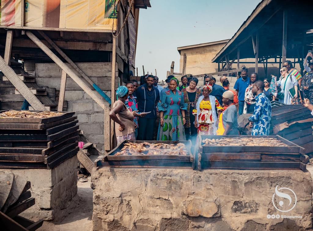 On their tour, Mrs Bawumia and Ambassador Regan interacted with local residents, gaining firsthand insights into the traditional cooking practices prevalent in Jamestown. They visited several households, including two fish smoking facilities, a kenkey house and a banku joint; observing the methods and fuels used in preserving fish and preparing meals.
