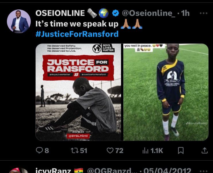 The campaign has gained significant traction online, with the hashtag #JusticeForRansford trending on X (formerly Twitter) as social media users demand accountability and reforms to protect young athletes.