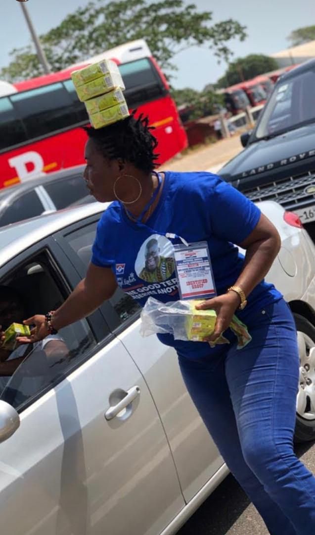 According to the leader of the NPP Loyal Ladies, Riftka Ayim, they distributed over twenty thousand boxes of Eku juice, potatoes bread and chops from Casa de Ropa.