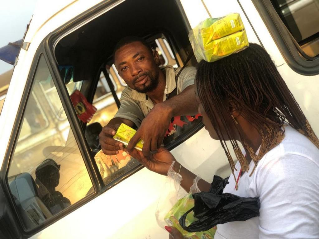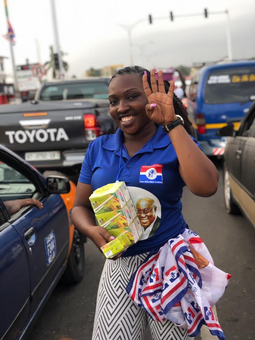 A volunteer group called NPP Loyal Ladies distributed boxes of Eku juice and other items to Ghanaians who plied the Trade Fair route in Accra.
