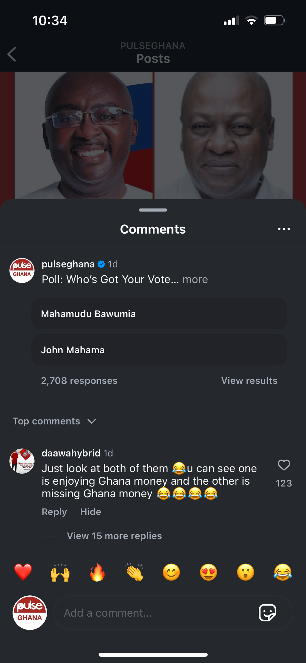 The polls, held on social media platforms including X (formerly Twitter), Instagram, and WhatsApp, revealed a substantial preference for Mahama among voters.