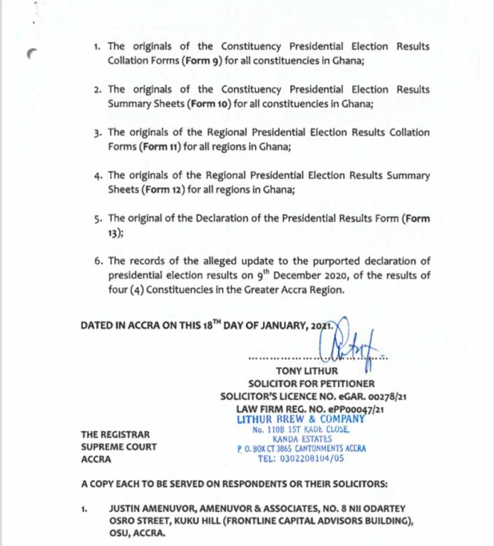In court on Tuesday, Lawyers of the former president John Mahama were seeking leave of the Supreme Court to allow the electoral commission respond to some 12 interrogatories (questions) to expedite the hearing of the election petition.