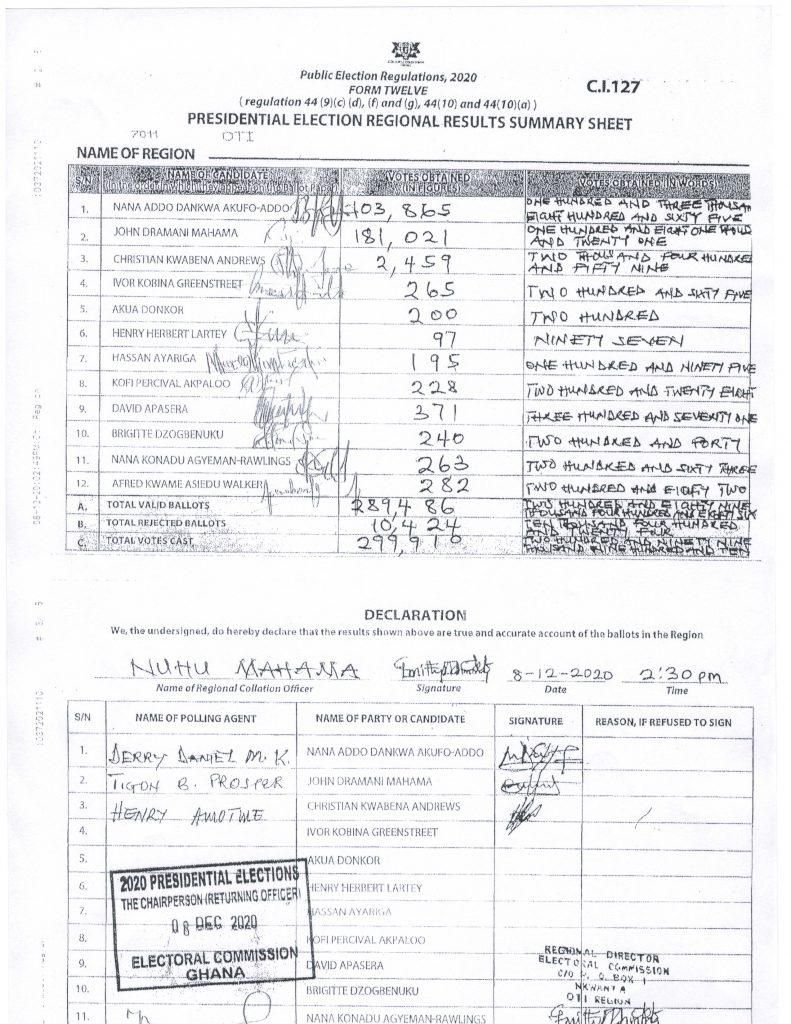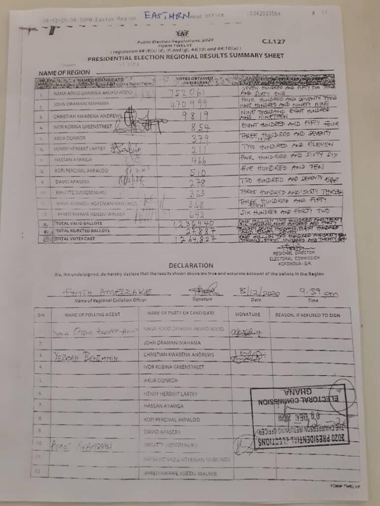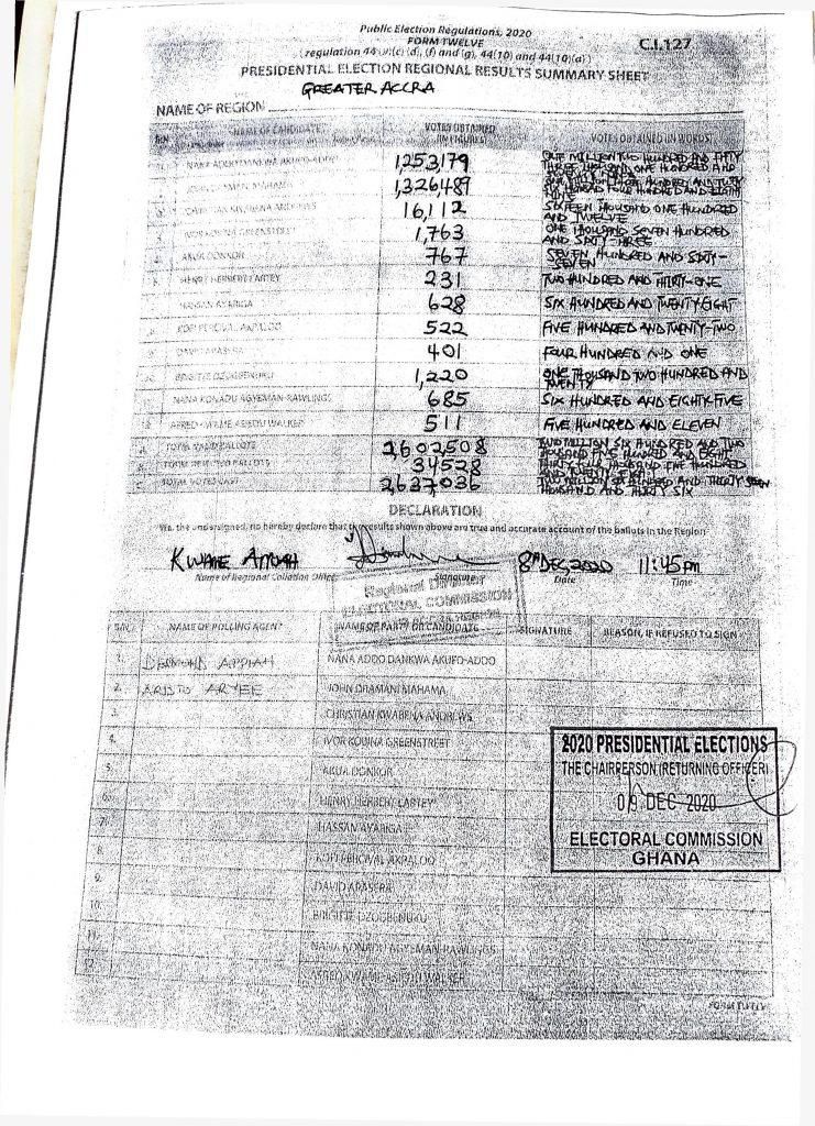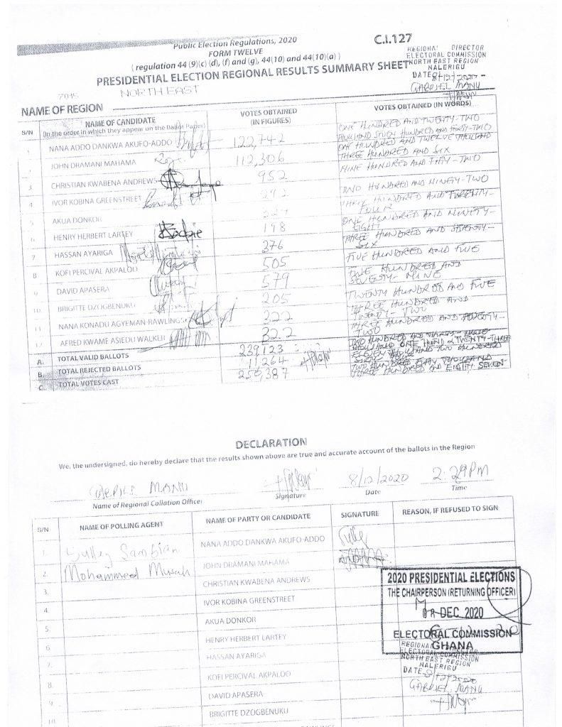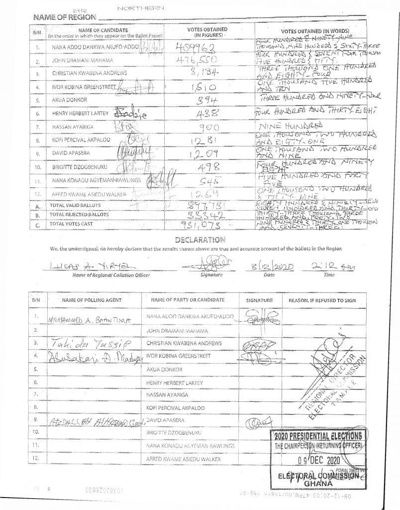 Below are the pink sheets on which President Akufo-Addo was declared the winner