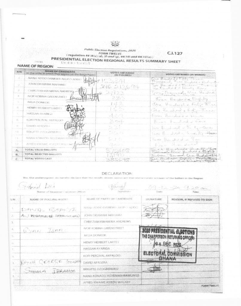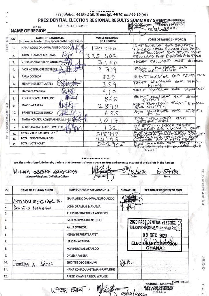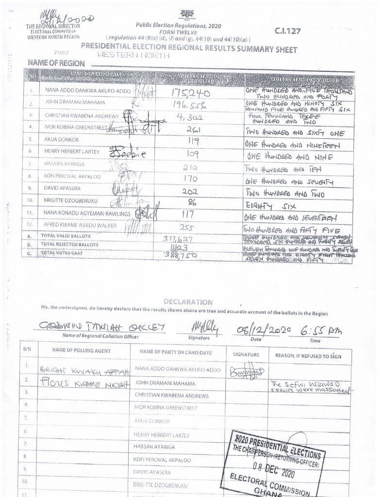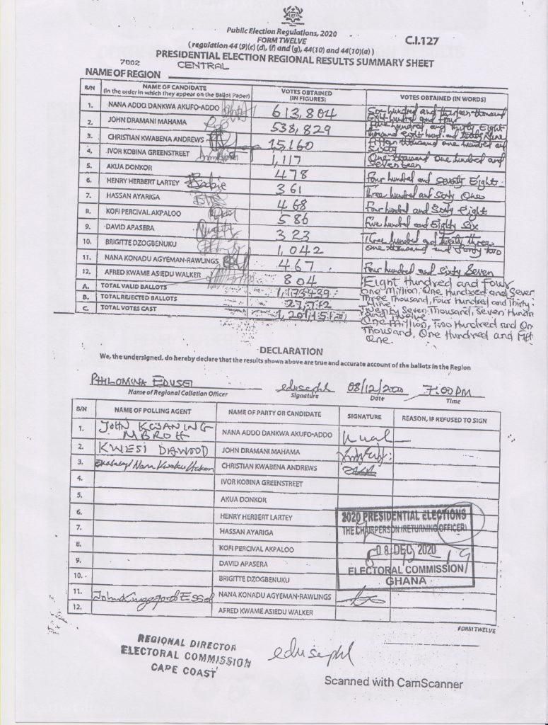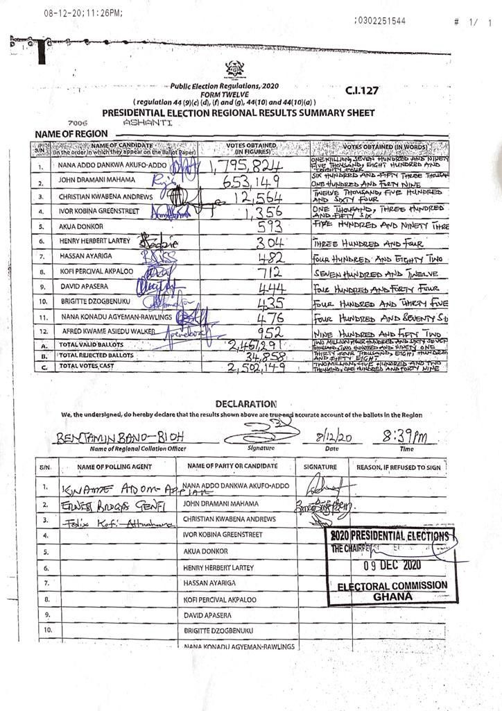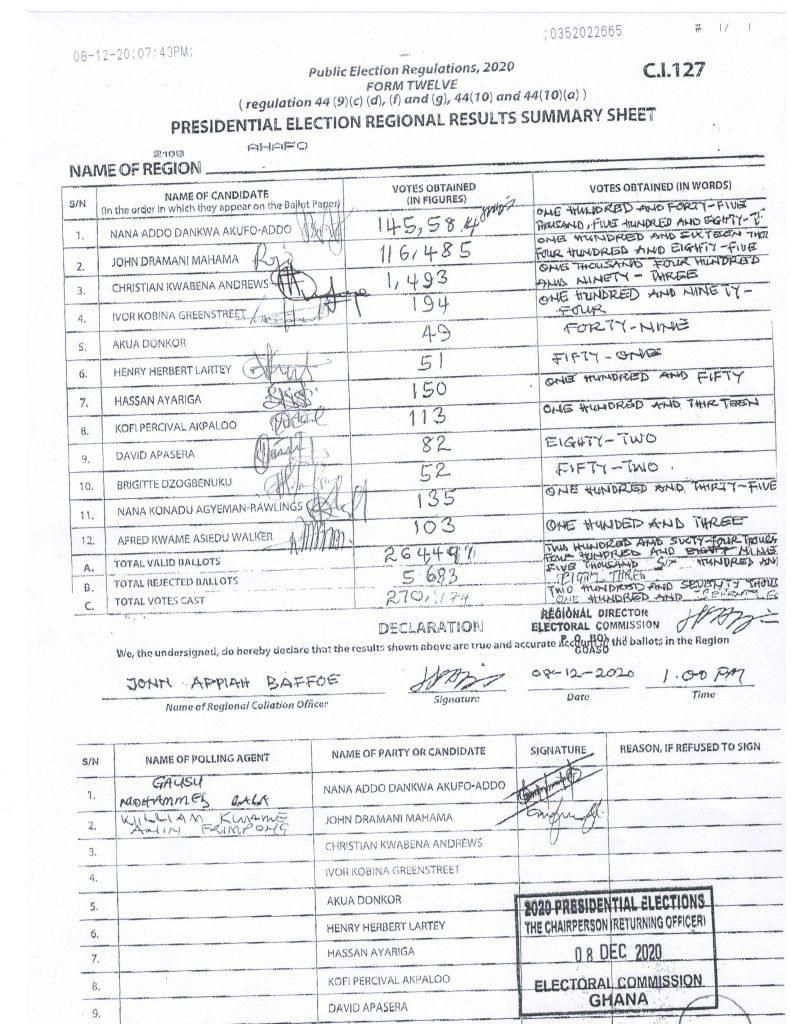 Below are the pink sheets on which President Akufo-Addo was declared the winner