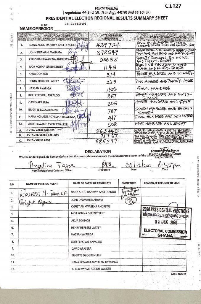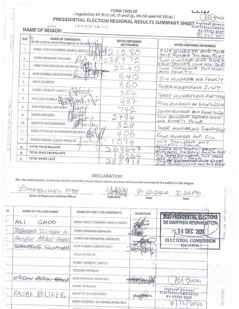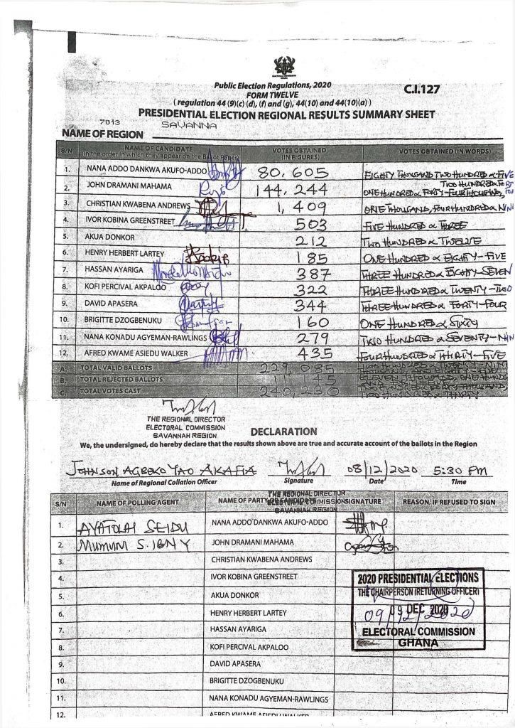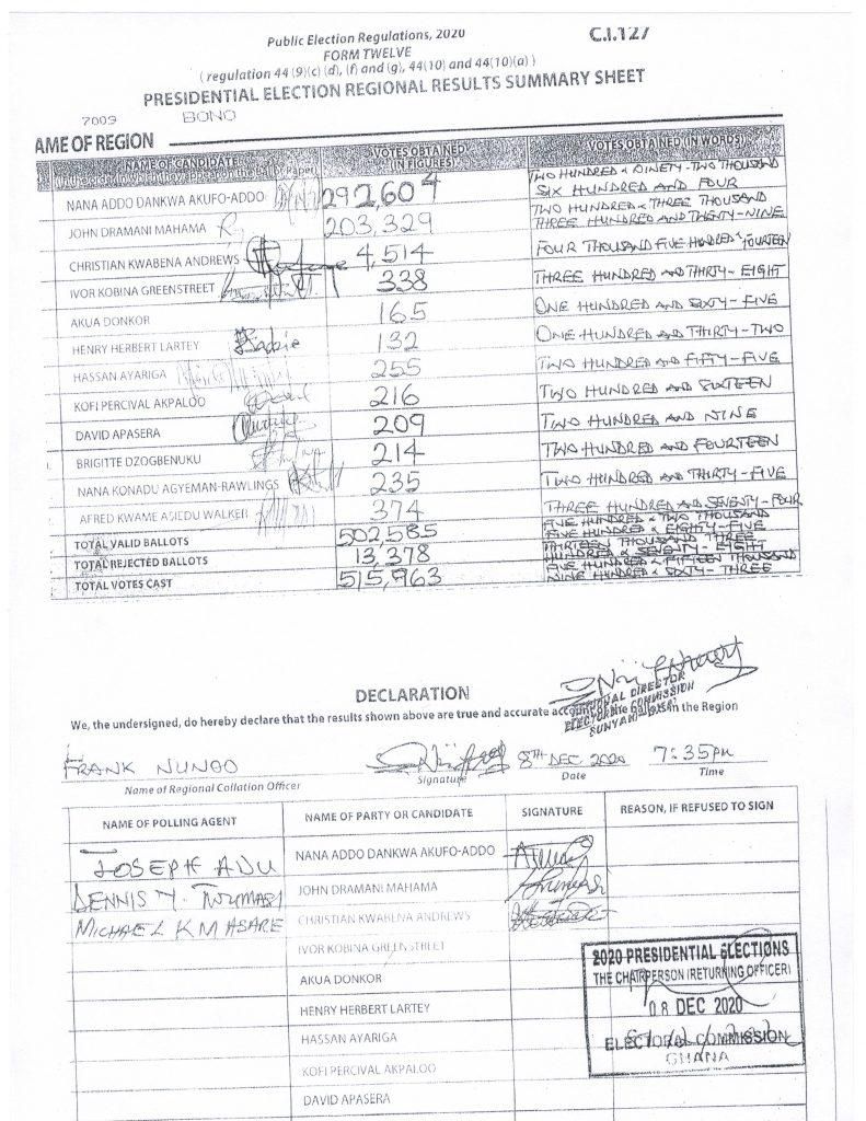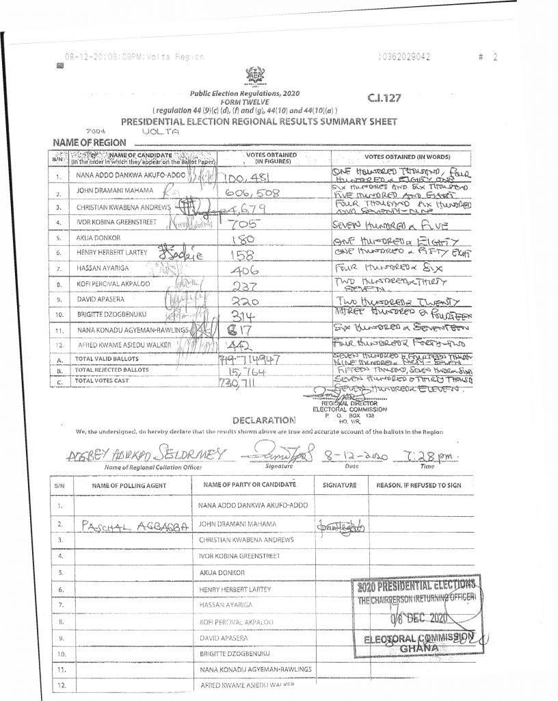Below are the pink sheets on which President Akufo-Addo was declared the winner