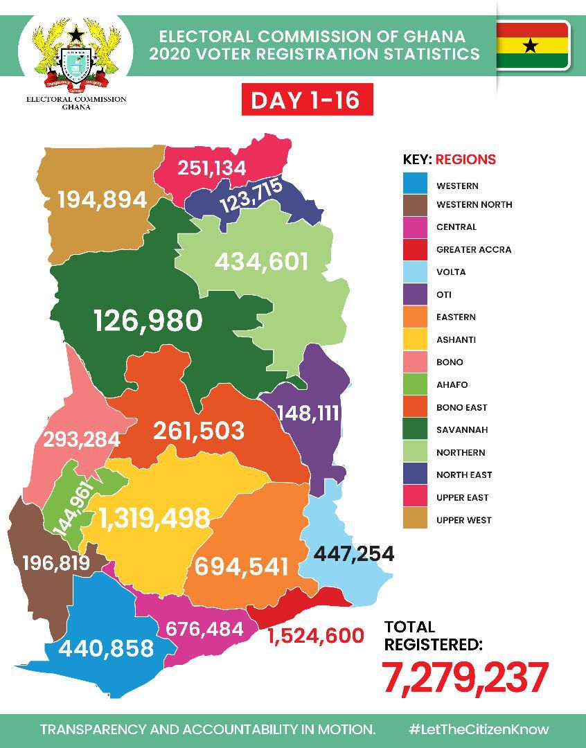 1,524,600 have been registered in the Greater Accra region while 1,319,498 persons have been registered in the Ashanti region.