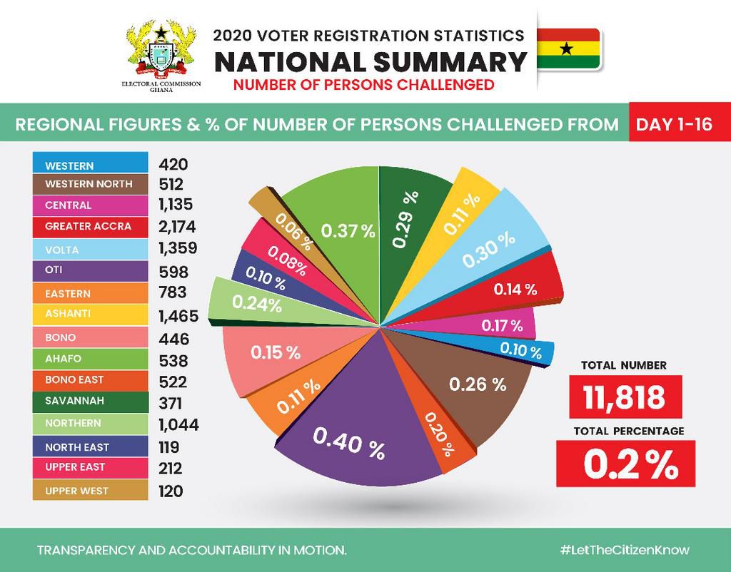 As expected the higher voter registration numbers were recorded in the Greater Accra and Ashanti regions to reflect the population density of these areas.