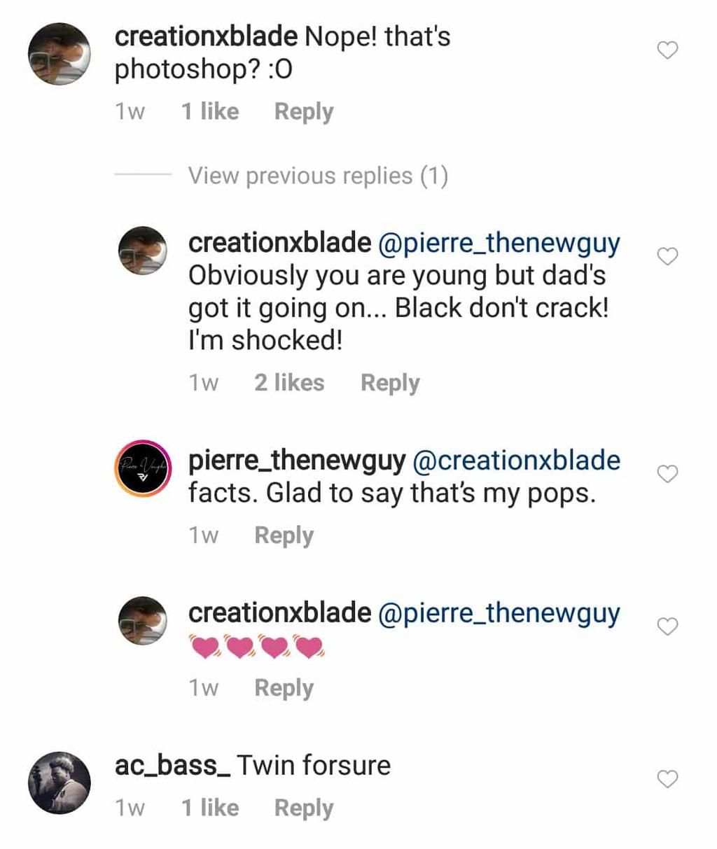 Pierre Q Vaughn who shared the beautiful photos with his dad on his social media handles captioned them: “Where I get my wisdom from, Father and son”.