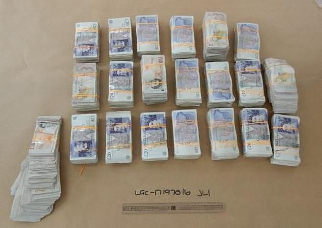 Officers seized £205,680 cash and more than two kilos of cocaine during a series of strikes as part of an 18-month covert investigation. Pictured: Some of the cash seized from the gang