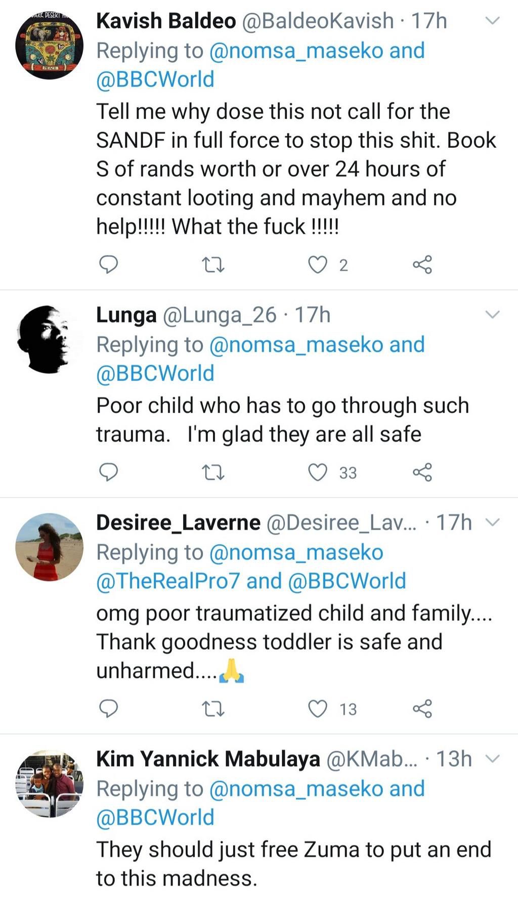 The protesters have been reported to have been looting and setting alight shopping centres to register their displeasure at the jailing of the former President who was found guilty of contempt of court by South Africa’s highest court, the Constitutional Court.