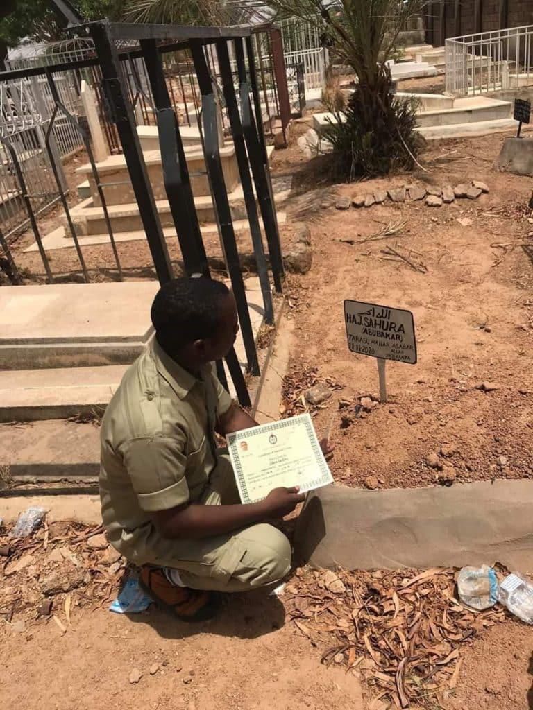 It is that kind of emotional feeling that compelled a graduate of Kano State Polytechnic, one Isah Salisu Alhassan who just passed out from his National Youth Service year to visit his late mother’s tomb at the cemetery to present his certificate to her.
