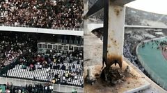 Footage aired by El Heddaf TV showed a section of the stadium railing collapsing, sending fans tumbling into the lower level.