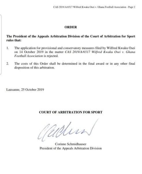 He then sought redress at the Court of Arbitration for Sports (CAS) in his quest to stop the GFA presidential elections from taking place without him in the race.