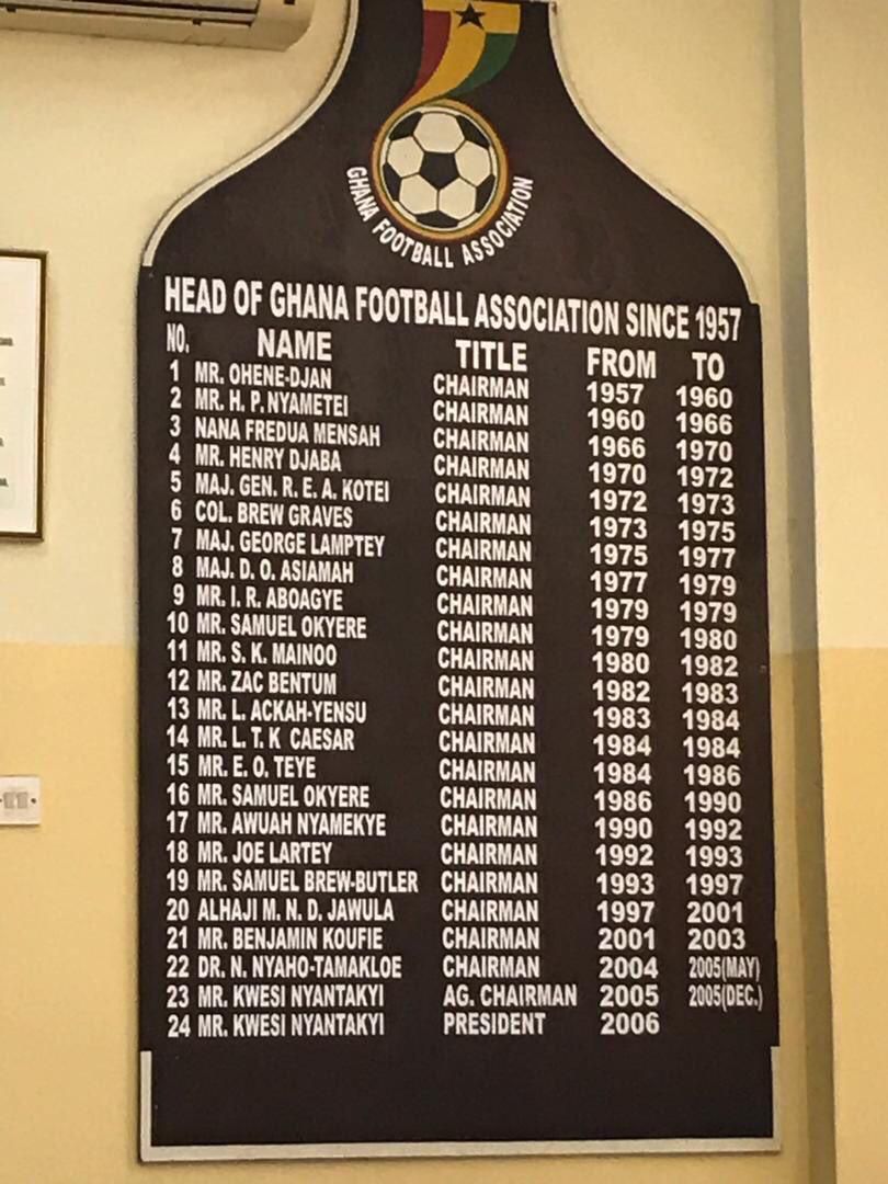 GFA Plaque Wrong: Here are the heads of Ghana Football Association since 1950