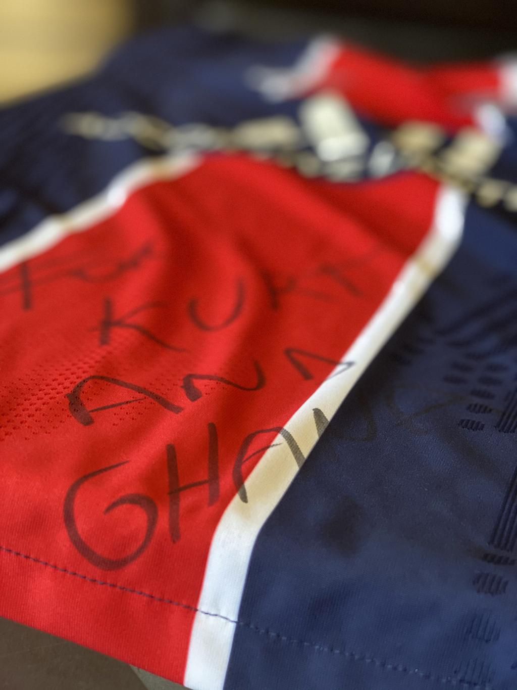 The jerseys had Mbappe’s signature on the back as well as the message: “For Kurt and Ghana”.