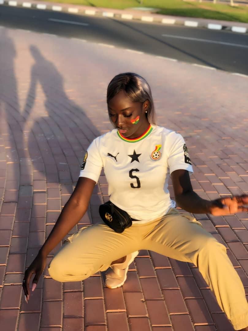 She also posted another photo, while in the stands watching one of Black Stars Africa Cup of Nations (AFCON) games and once again in a jersey number five.