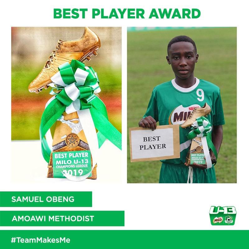 The victory means that Amoawi Methodist have become the first side from the Ashanti region to win the Milo U-13 Champions League.