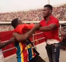 The pro boxer beat up the football fan during a game between Hearts of Oak and Asante Kotoko at the Accra sports stadium.