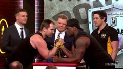 Ex-rugby players, Wendell Sailor and Ben Ross, made an appearance on The Footy Show – a talk show in Australia – and engaged in an arm-wrestling match that really didn’t end well.