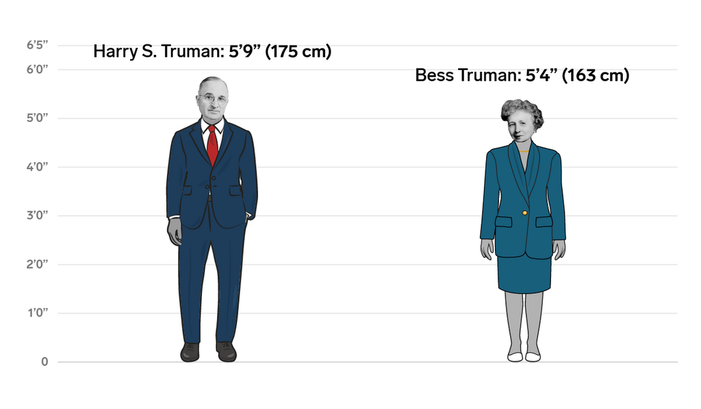 The average height of US presidents was 5-foot-10-inches, and the typical height difference between presidents and first ladies was 6.5 inches.