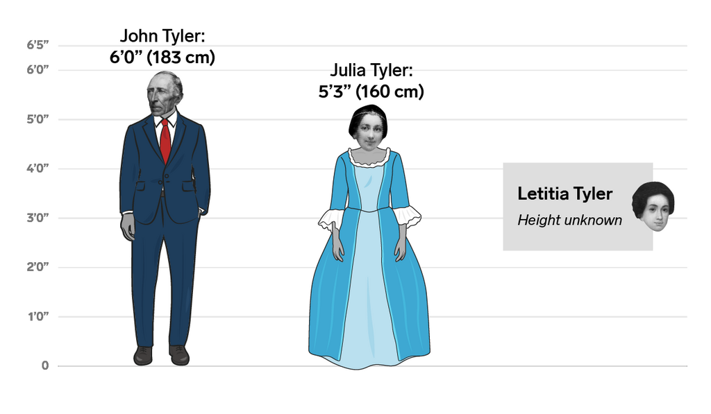 John and Julia Tyler: 9 inches (23 cm); John and Letitia Tyler: Unknown