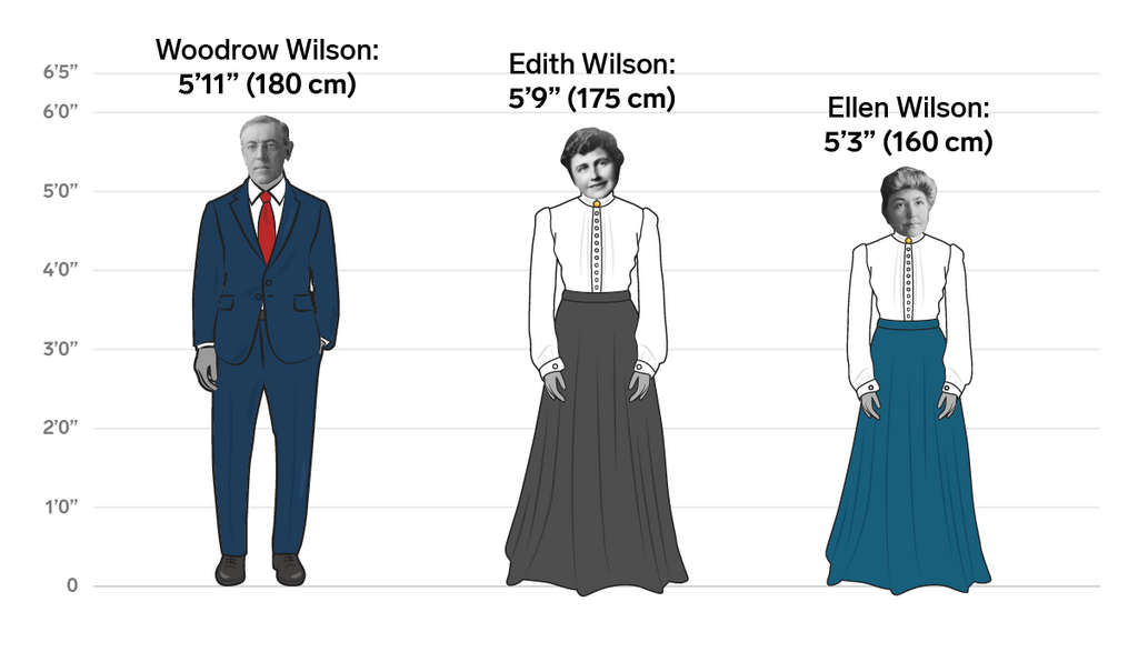 Woodrow and Edith Wilson: 2 inches (5 cm); Woodrow and Ellen Wilson: 8 inches (20 cm)