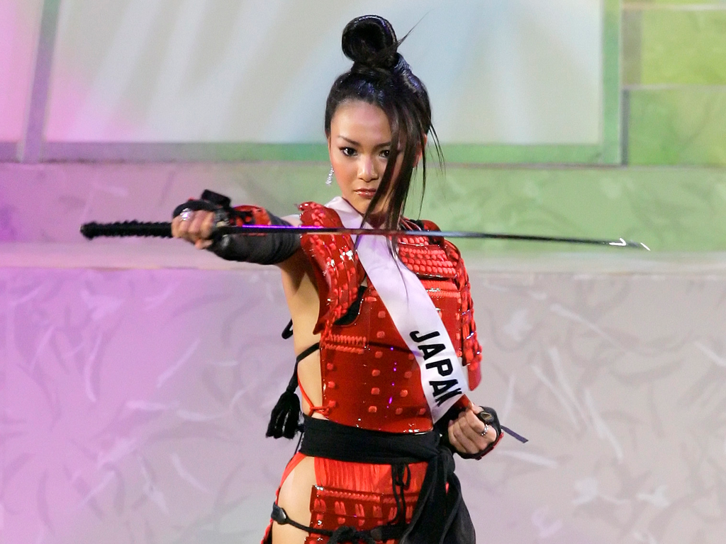 Miss Universe Japan 2006, Kurara Chibana, won the national costume show for her samurai-inspired garb.