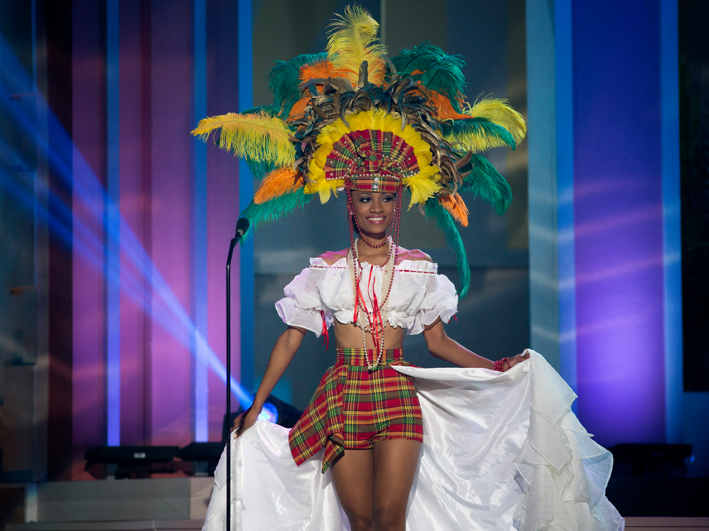Miss St. Lucia Universe 2014 Roxanne Didier-Nicholass costume was a modernized take on St. Lucias national dress.