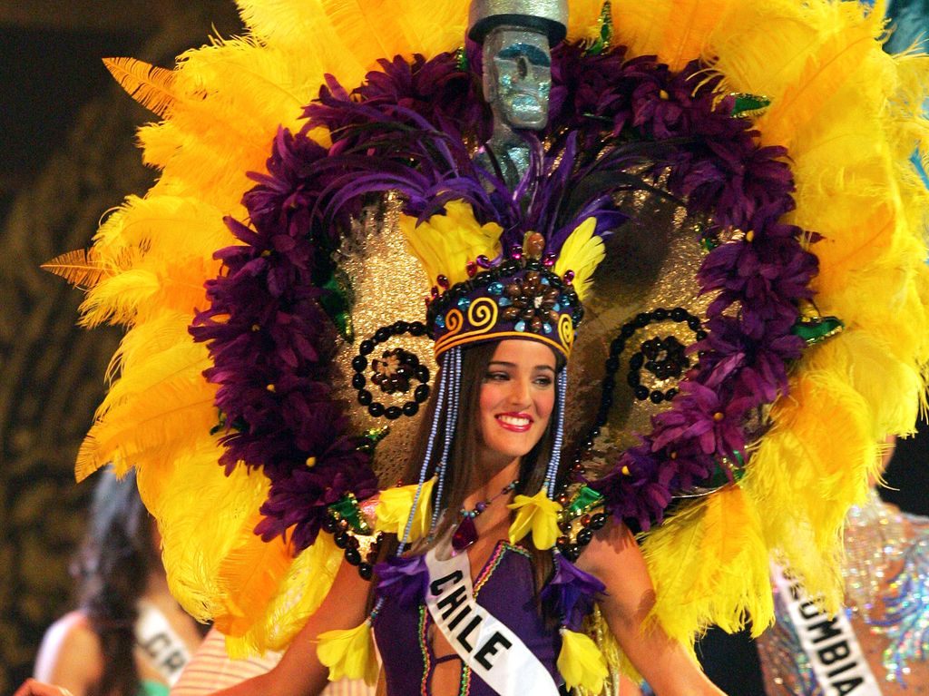 Miss Chile Universe 2005 Renata Ruiz wore a vibrant headpiece, complete with an Easter Island statue on top.