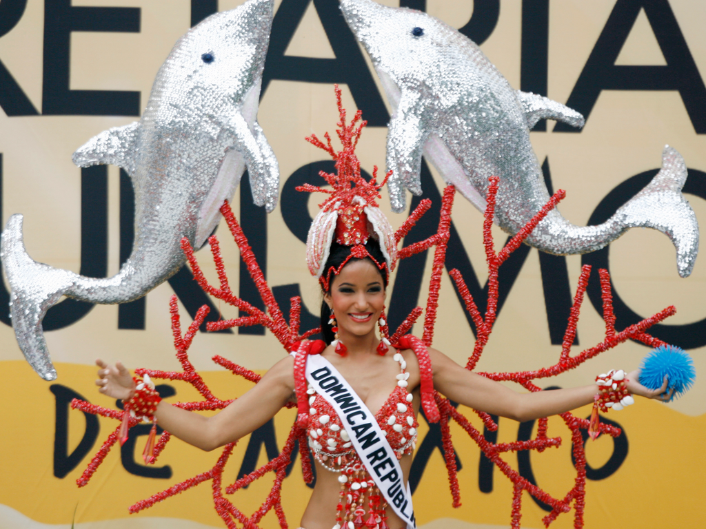 Miss Dominican Republic 2007 Massiel Taveras shouldered two massive dolphins and a coral headpiece.