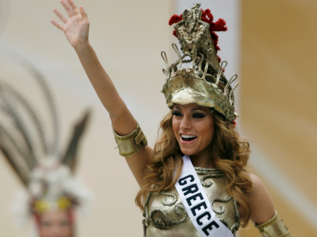 Miss Universe Greece 2007 Doukissa Nomikou donned an outfit inspired by ancient Grecian armor.