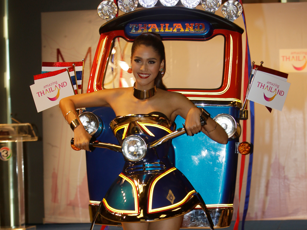Miss Thailand 2015 Aniporn Chalermburanawong rocked a dress inspired by a tuk tuk.