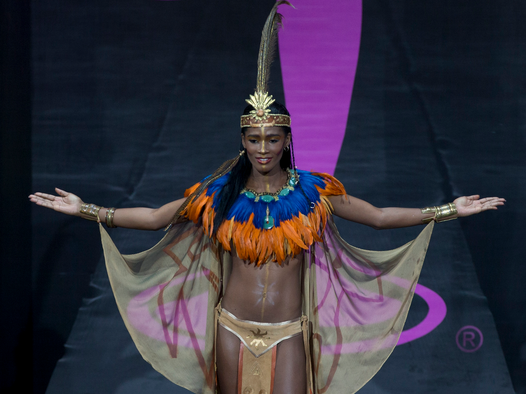 Miss Haiti Universe 2013 Mondiana Pierres costume looked like it was inspired by the indigenous tribes of Haiti.