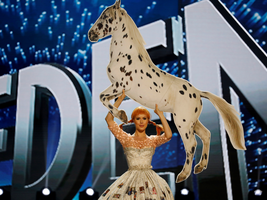 Miss Sweden 2016 Ida Ovmar paid homage to Swedish author Astrid Lindgrens creation Pippi Longstocking, complete with her own horse.