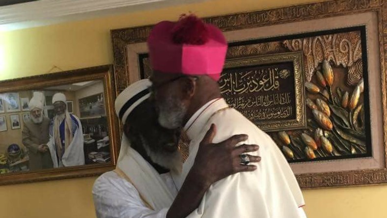 The National Chief Imam Sheikh Usman Nuhu Sharubutu and Archbishop Palmer Buckle have been pictured in a warm hug.