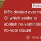 MPs divided over new CI which seeks to abolish no-verification no-vote clause