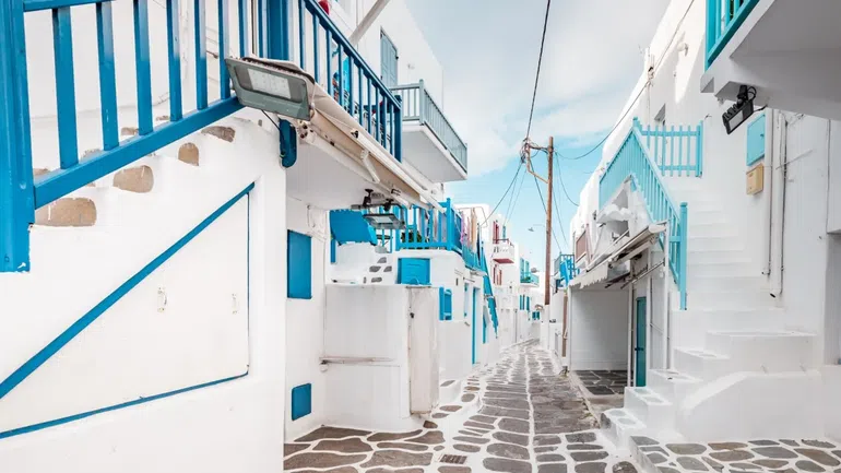 These narrow, whitewashed streets are filled with colourful doors, blooming flowers, and hidden cafés—perfect for getting lost and discovering something new.