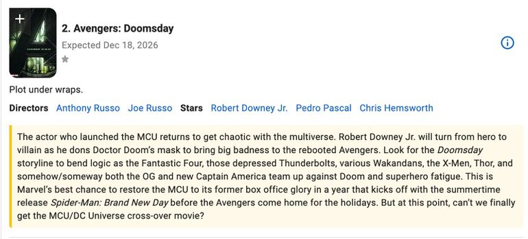 1.Avengers: Doomsday