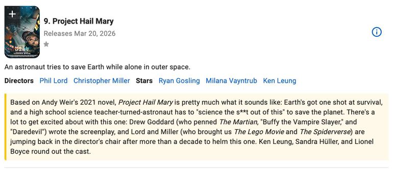 Based on the bestselling novel by Andy Weir, Project Hail Mary blends hard science fiction with humor and heart. The story of a lone astronaut tasked with saving Earth has already captivated readers, and expectations are high for a faithful, emotionally powerful adaptation.