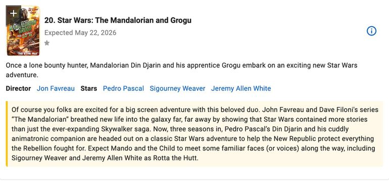 The Mandalorian and GroguThe Star Wars universe continues its expansion with this big-screen adventure featuring Din Djarin and Grogu. Bridging television success with cinematic scale, the film is expected to attract both longtime fans and newcomers, proving the franchise’s enduring power.