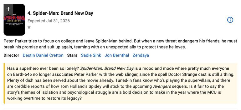 Brand New DayPeter Parker swings back into theaters in Spider-Man: Brand New Day. Following dramatic changes to his personal and heroic life, this film is expected to reset the character while keeping the emotional weight that has defined recent entries. For many, it’s one of the most exciting superhero releases on the horizon.