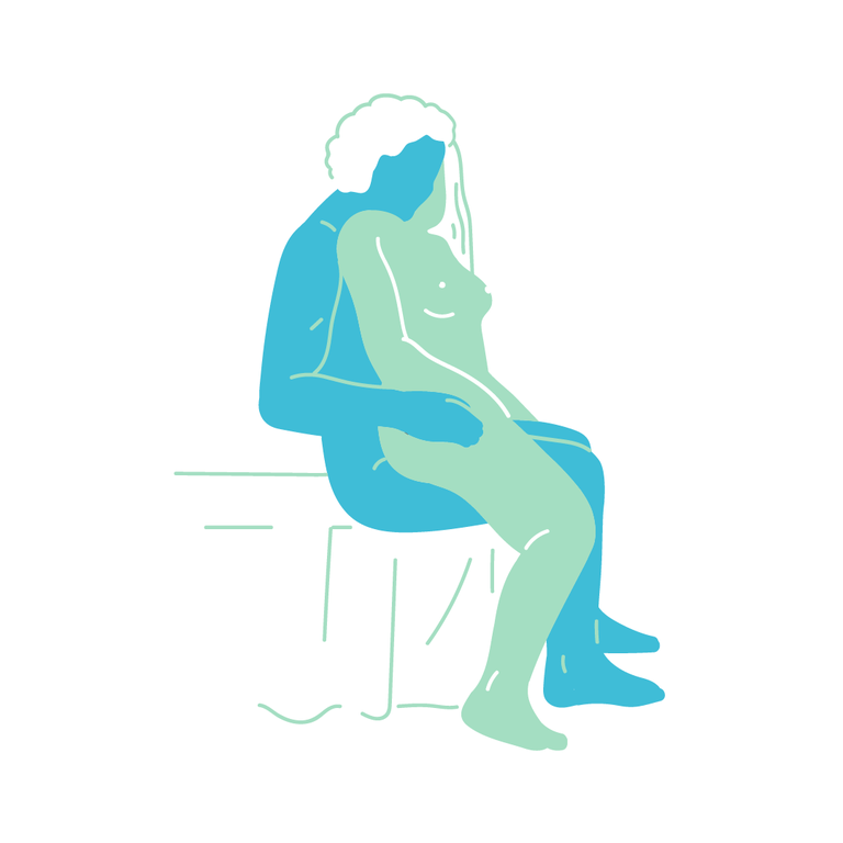 2) The Chairman Are you lucky/fancy enough to have one of those seat-shelves in your shower? If not, did you take my advice and buy one yet? You need to: This seated rear-entry position is the perfect shower choice if you like girl-on-top . Do It: Have your partner sit on the bench with feet on the floor. Facing away from them, sit on their lap, straddling them (you choose how wide to spread your legs based on your stability). As you pump up and down, your hands will be free to play with your clit or any other erogenous zones. You can even have your partner hold your wrists so you can lean forward and go at it at an angle. Fun! Emily Schiff-Slater