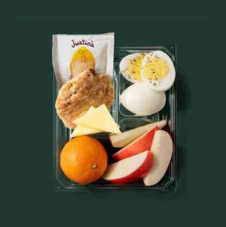 Starbucks Eggs & Cheese Protein Box Picnic for lunch, anyone? One of the healthiest on-the-go options in my opinion, this protein box provides 23 grams of protein from eggs, cheese, and peanut butter, while also offering five grams of fiber from whole-grain bread and fresh fruit, says Blakely. She notes that its similar to a lunch you might pack for yourselfand thats a good thing, as its a sign its not overly processed. Per serving: 470 calories, 25 g fat (7 g saturated), 26 g carbs, 21 g sugar, 540 mg sodium, 5 g fiber, 23 g protein Courtesy Image