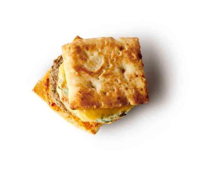 Jamba Juice Turkey Sausage, Roasted Red Pepper & Gouda Breakfast Sandwich This breakfast sandwich has it all, says Auslander Moreno: vegetables, which add fiber, and Gouda cheese, which is filling, thanks to the fat and protein one-two punch. Per serving: 290 calories, 12 g fat (4.5 g saturated), 25 g carbs, 2 g sugar, 660 mg sodium, 1 g fiber, 20 g protein Courtesy Image