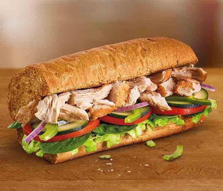 Subway Rotisserie-Style Chicken Sub Because rotisserie chicken tends to have fewer nitrates than other deli meats or cold cuts at Subway, this high-protein sandwich option reigns supreme. It barely has any fat and is quite low in sugar, so for those watching those metrics, this would also be ideal, she says. For more fiber and nutrients, load it up with every vegetable offering at the salad bar. Per serving: 310 calories, 6 g fat (2.5 g saturated), 40 g carbs, 6 g sugar, 560 mg sodium, 5 g fiber, 29 g protein Courtesy Image