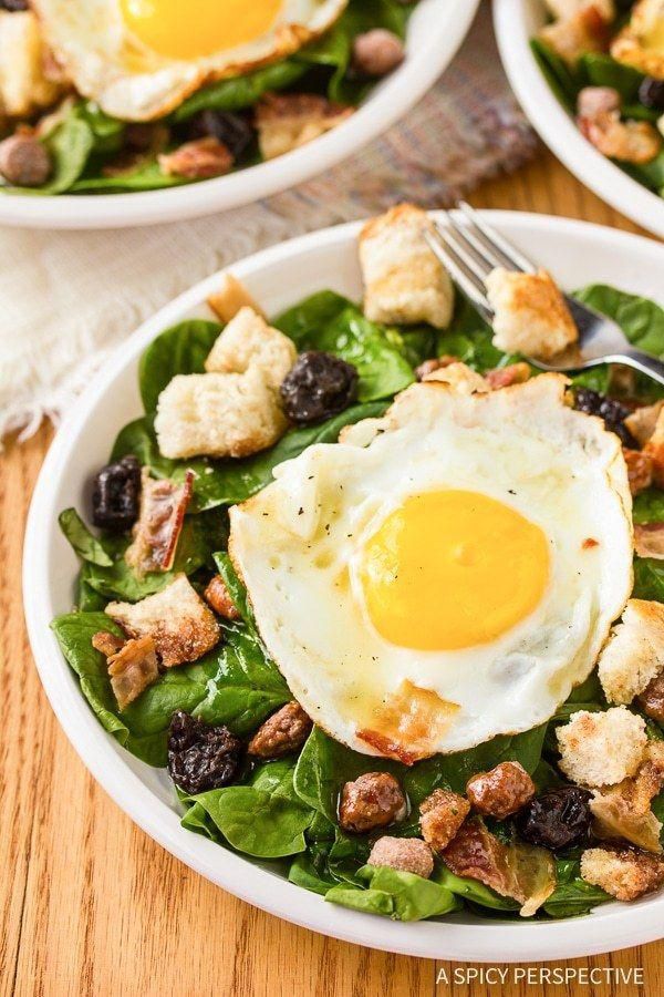The Breakfast Salad Theres no denying that cinnamon toast croutons and maple vinaigrette could get even the pickiest eaters to eator devourtheir greens. Get the recipe Per serving: 434 calories, 27 g fat (11 g saturated), 33 g carbs, 582 mg sodium, 17 g sugar, 3 g fiber, 13 g protein A Spicy Perspective