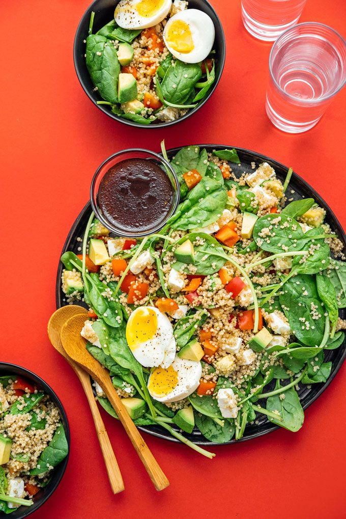 Mediterranean Quinoa Salad Soft-boiled eggs, feta, avocado, and quinoa make this power bowl so satisfyingly creamy, youll want it for lunch, too. Get the recipe Per serving: 378 calories, 27 g fat (8 g saturated), 27 g carbs, 683 mg sodium, 5 g sugar, 6 g fiber, 13 g protein Live Eat Learn