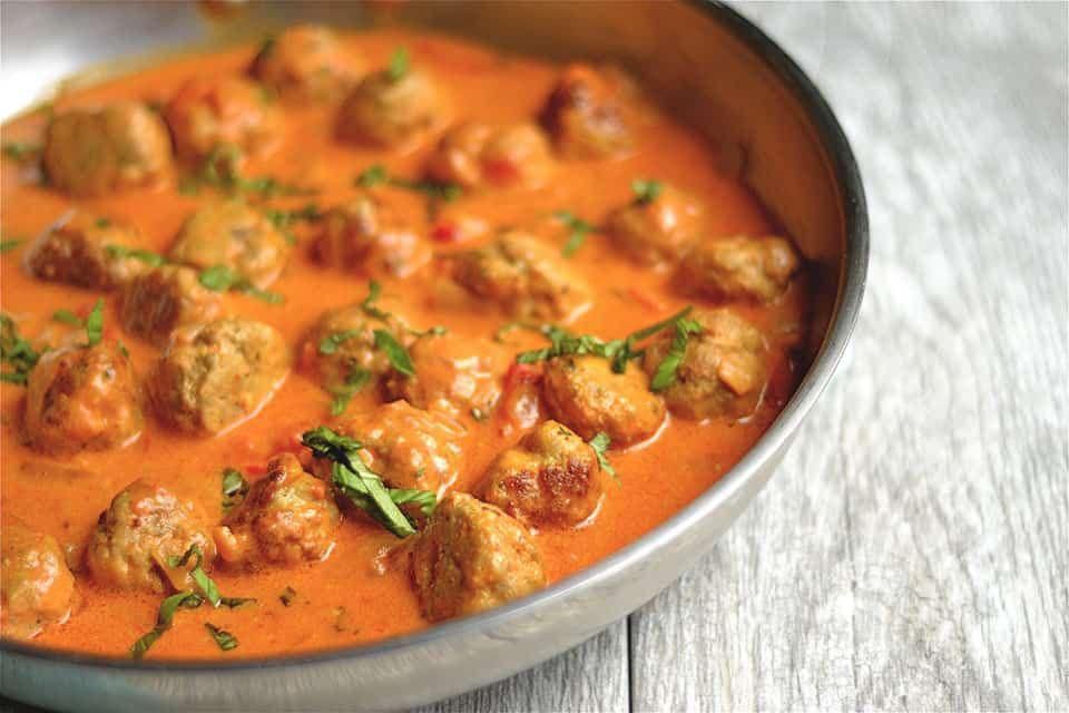 Thai Coconut Curry Turkey Meatballs This warm, creamy and spicy meatball recipe from Wholesomelicious is just what you need for comfort food on a frigid winter evening. It's a great paleo ground turkey recipe that feels hearty and decadent but is super good for you, and it is ready in just 35 minutes, which is fast for a busy weeknight! Wholesomelicious